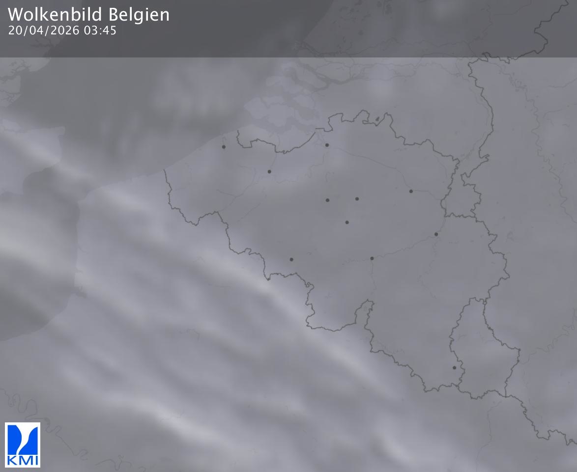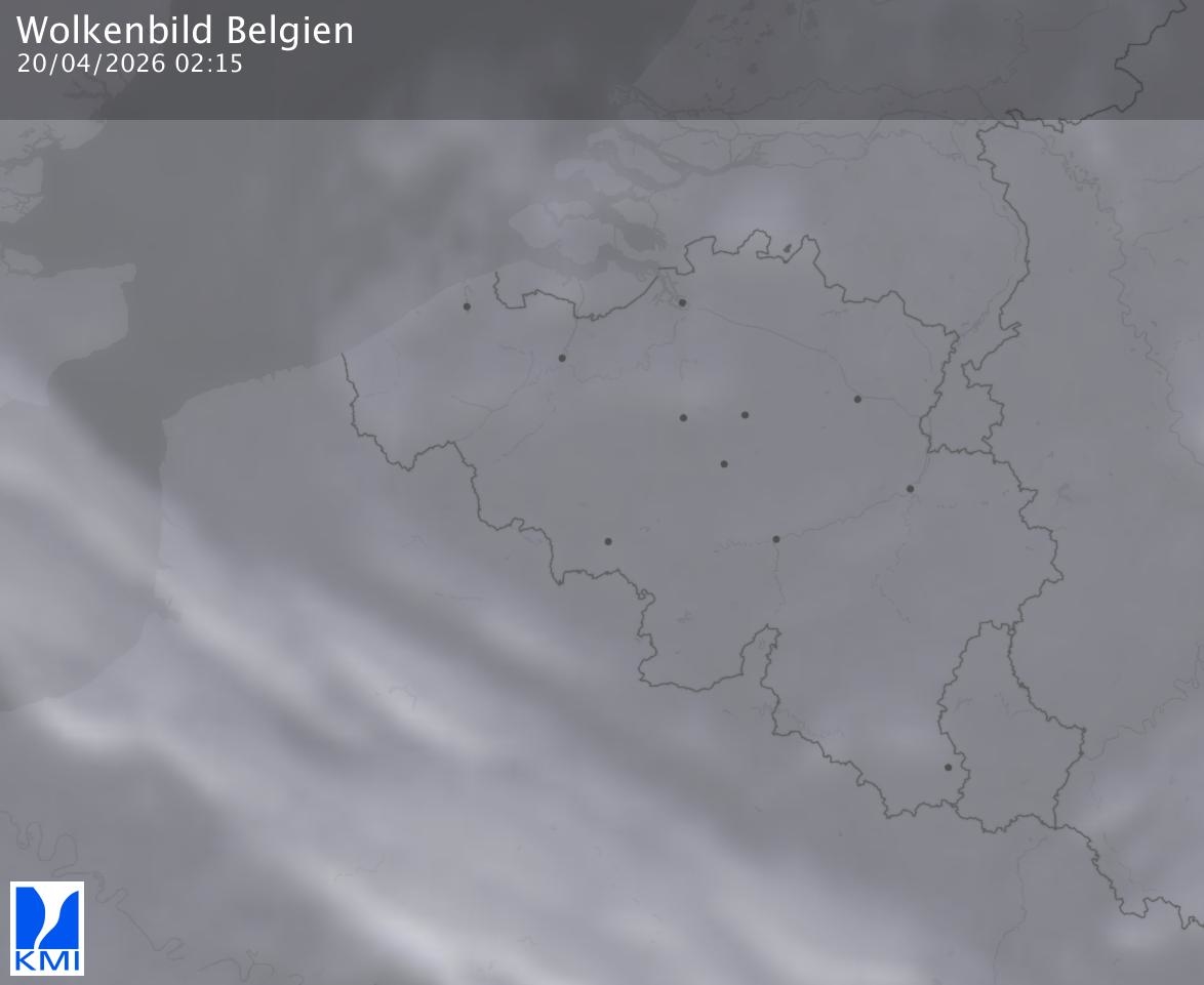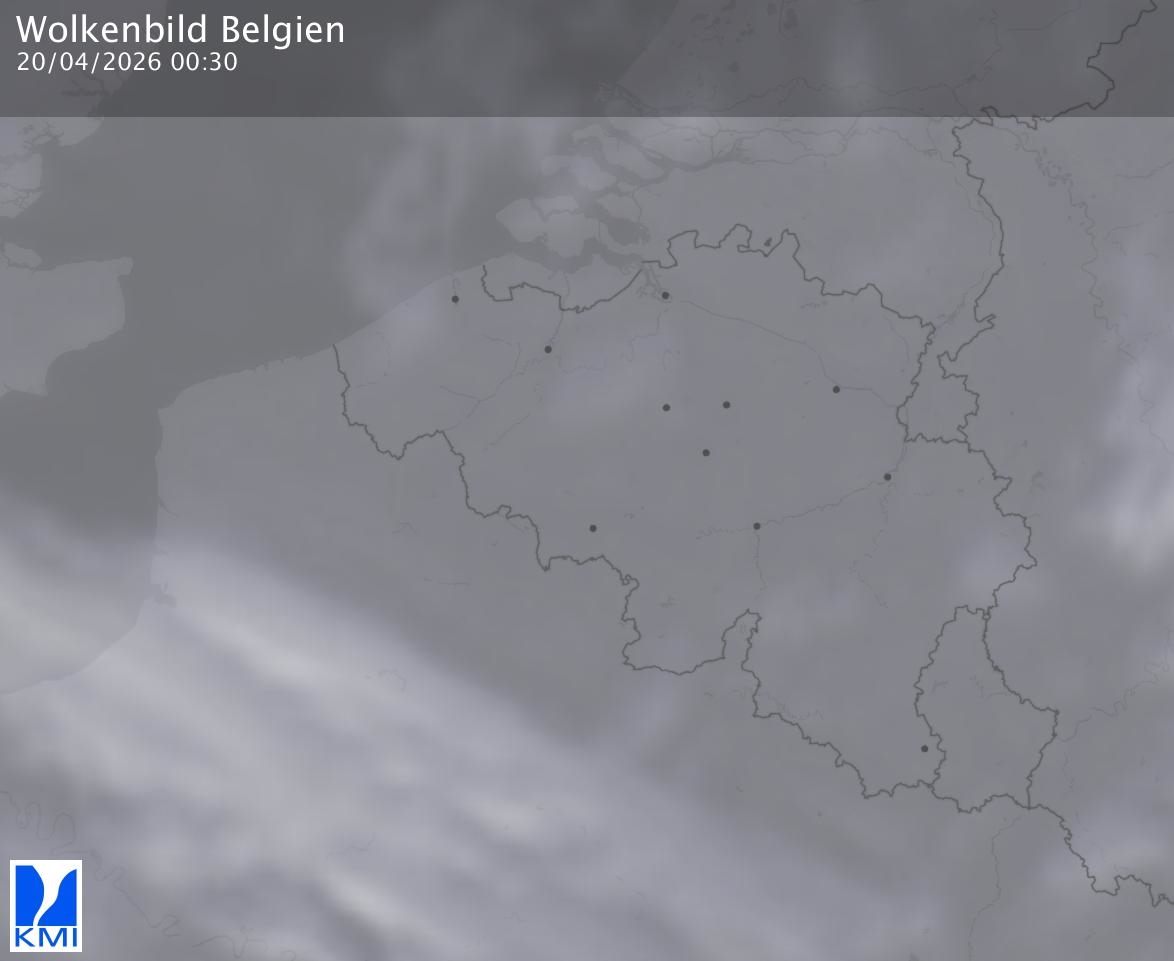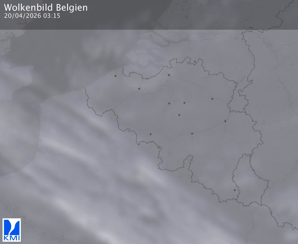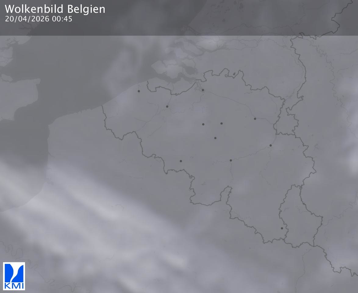 Das Wolkenbild Belgiens ist eine Kombination der sichtbaren und Infrarotkanäle des Satelliten.