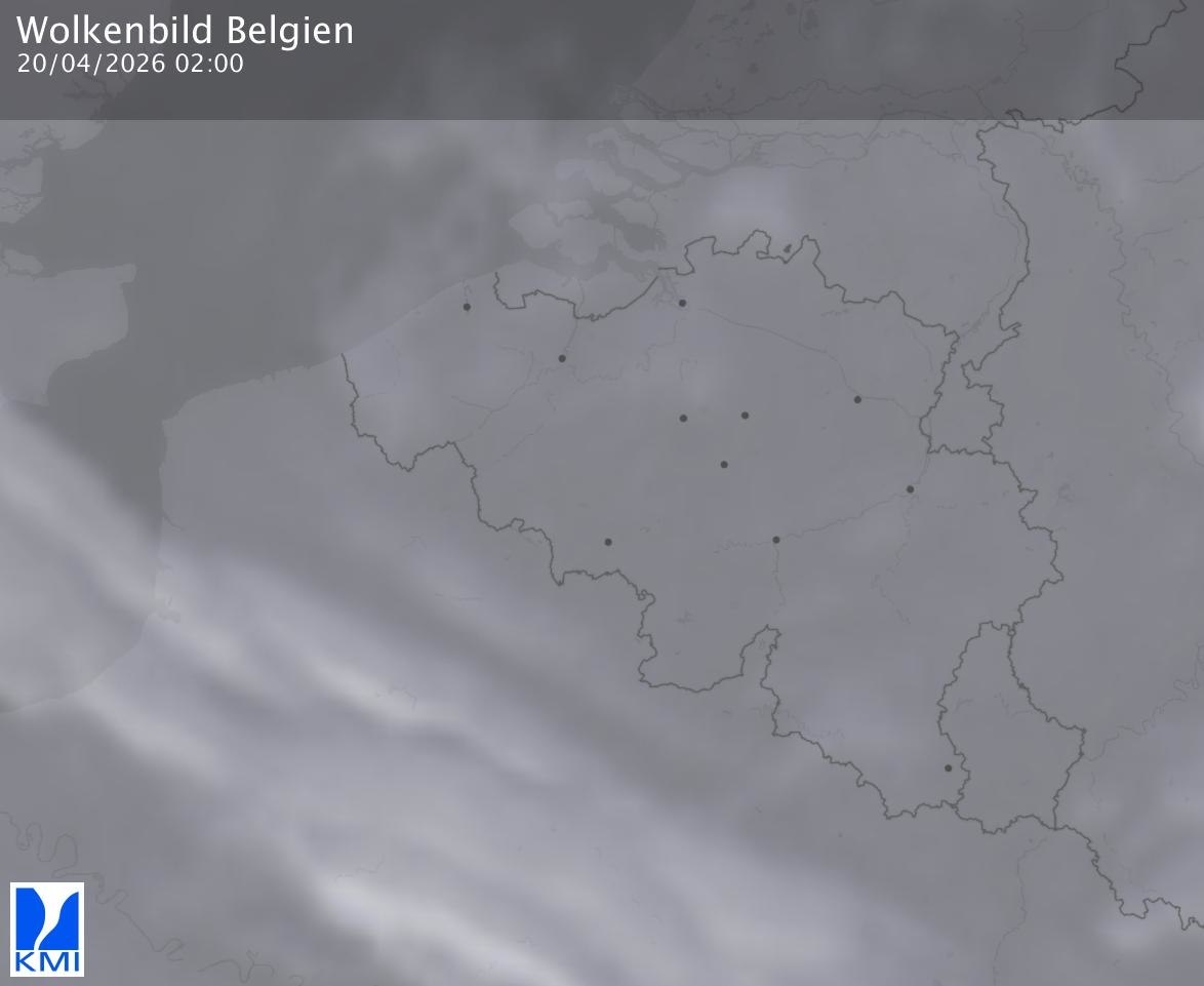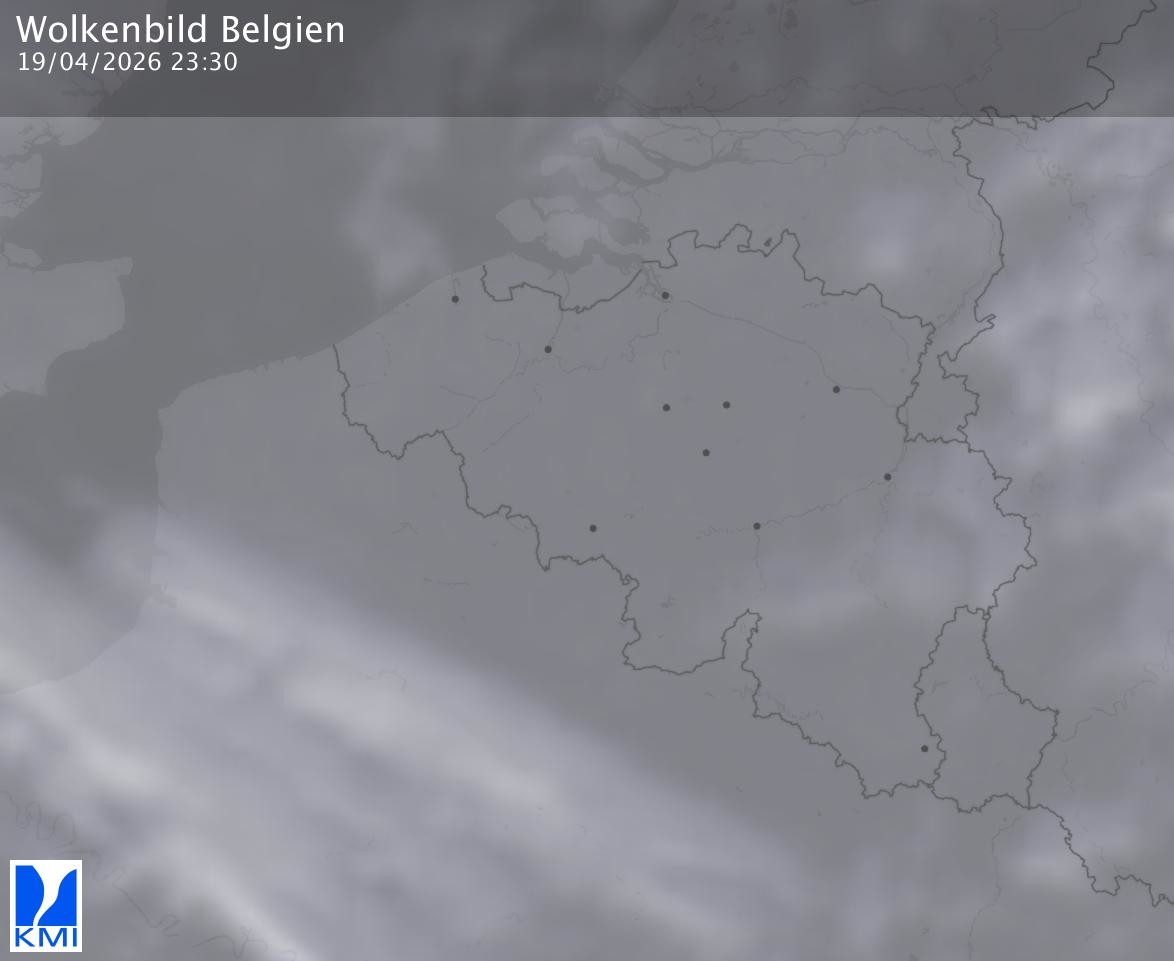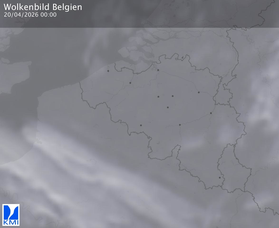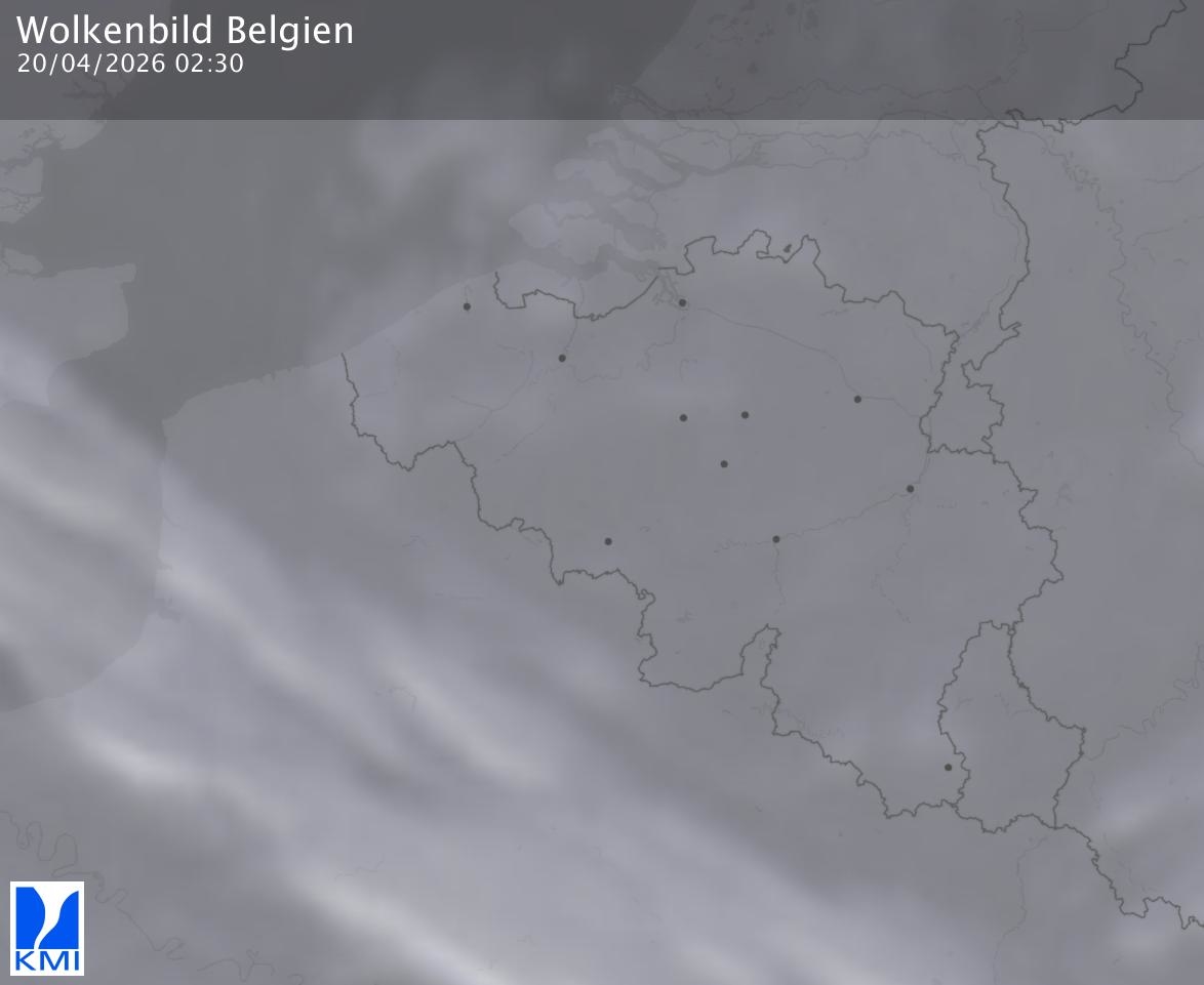 Das Wolkenbild Belgiens ist eine Kombination der sichtbaren und Infrarotkanäle des Satelliten.