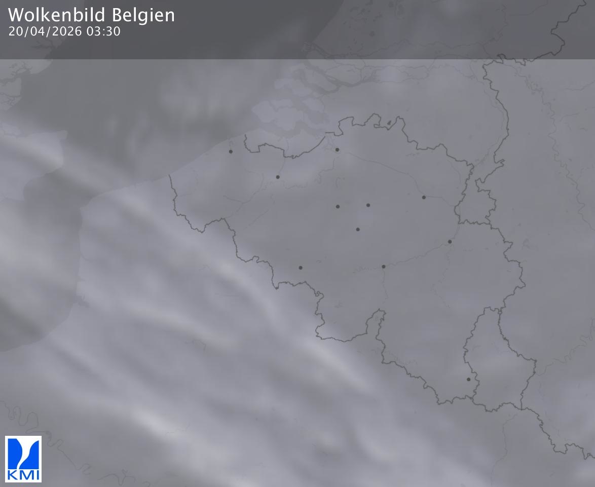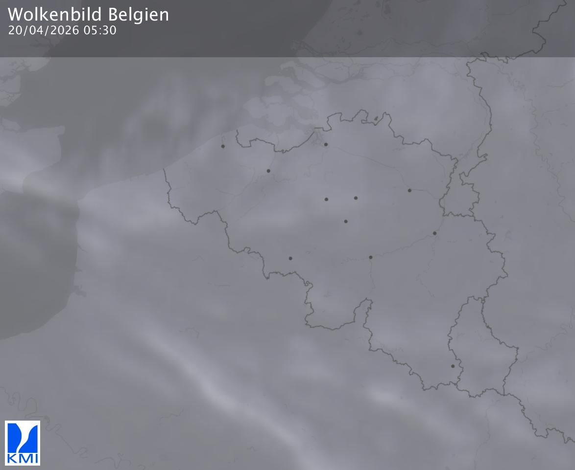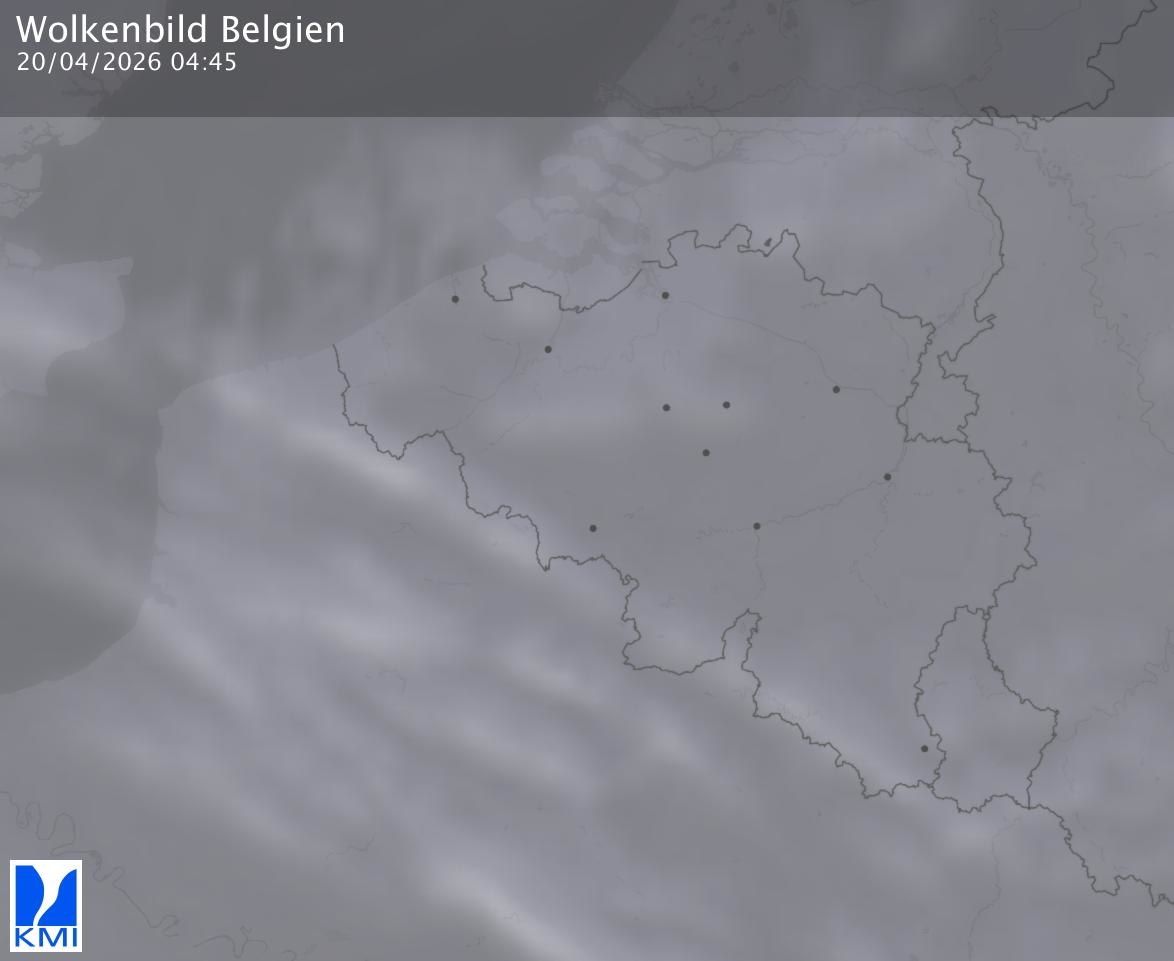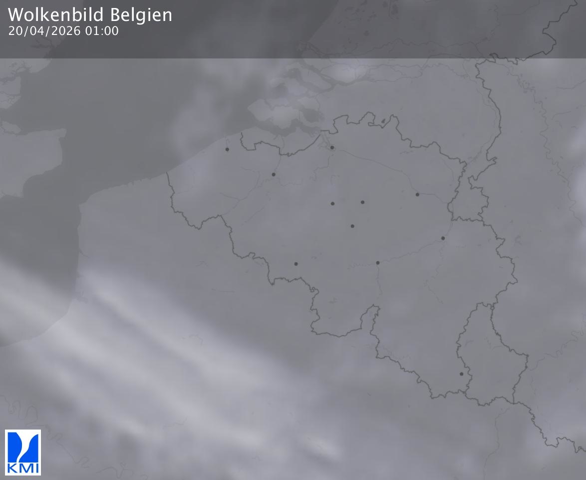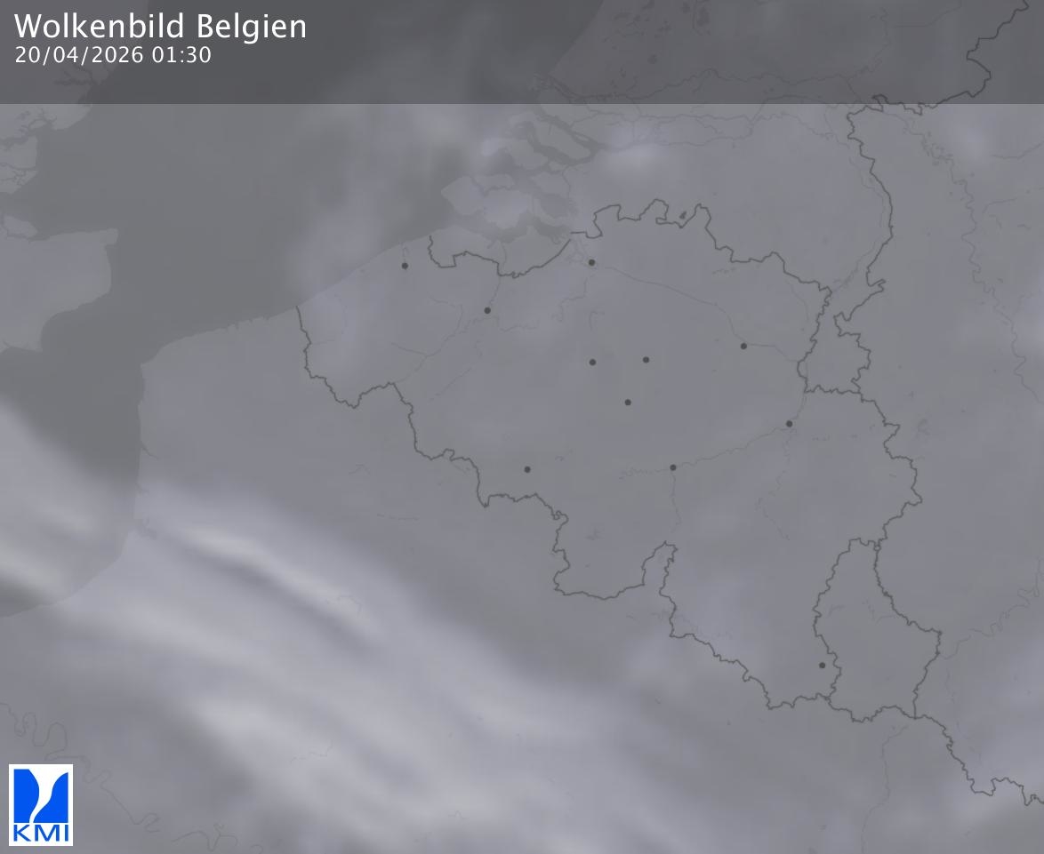 Das Wolkenbild Belgiens ist eine Kombination der sichtbaren und Infrarotkanäle des Satelliten.
