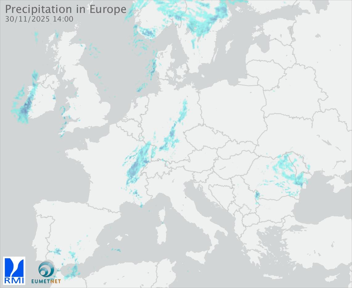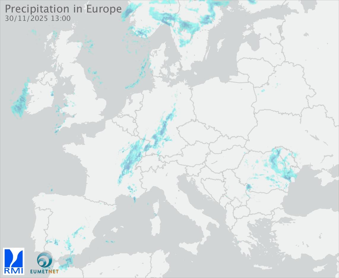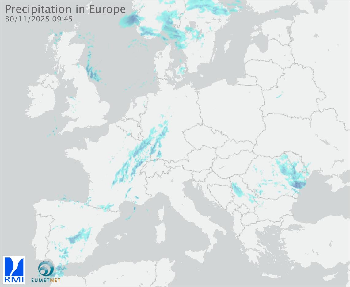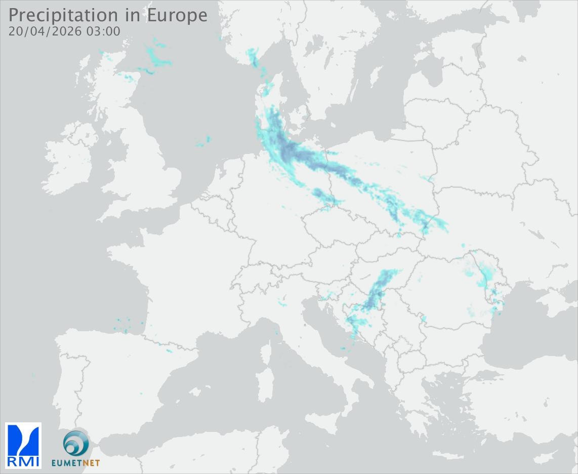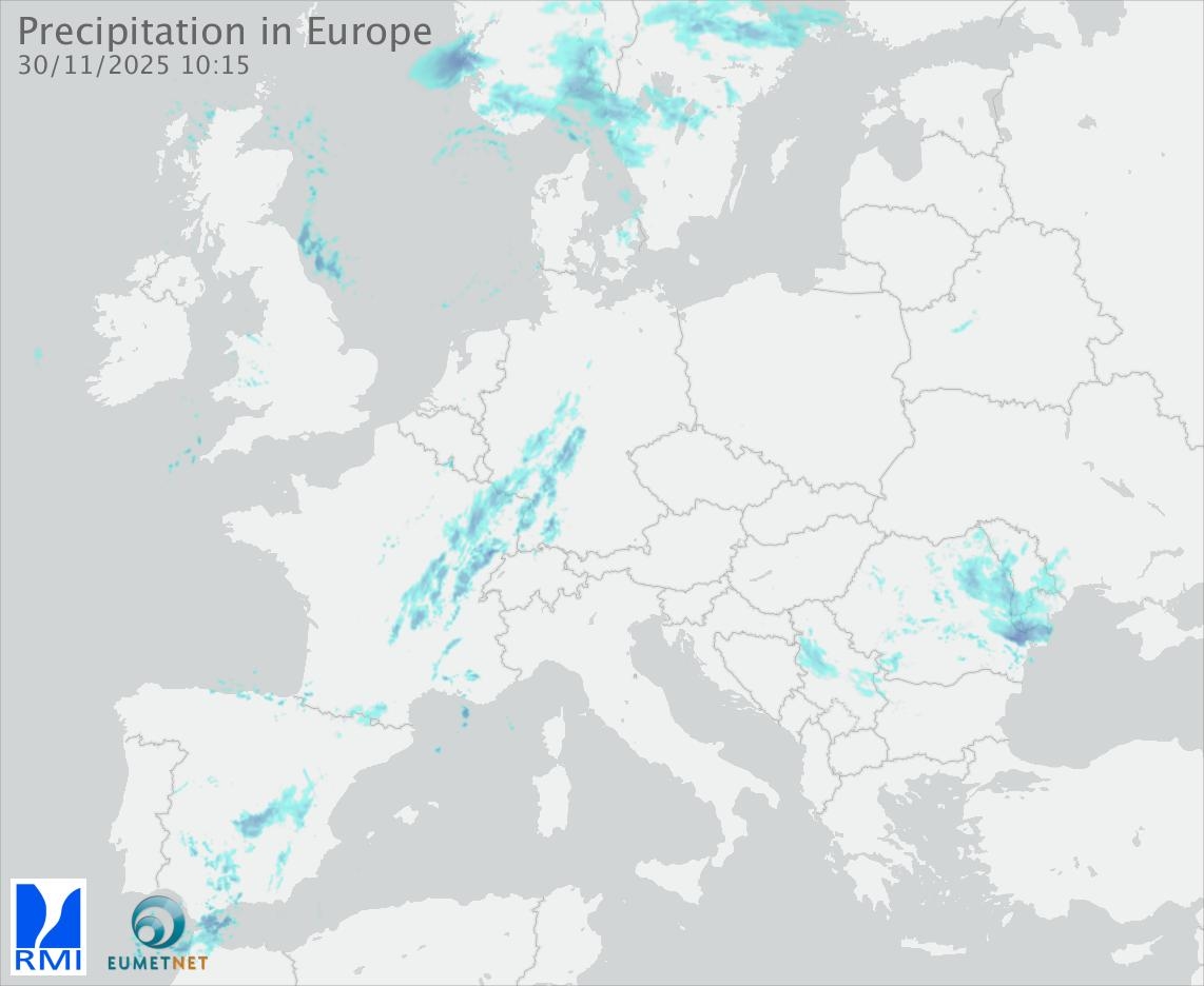 This animation shows the fallen precipitation observed by the radars of the European members of the OPERA program of Eumetnet.