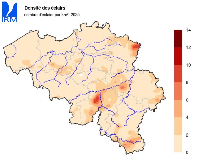 | Nombre de jours d'orage en Belgique | d | 72 | 93.3 | - | 120 | 2012 | 69 | 2013 |