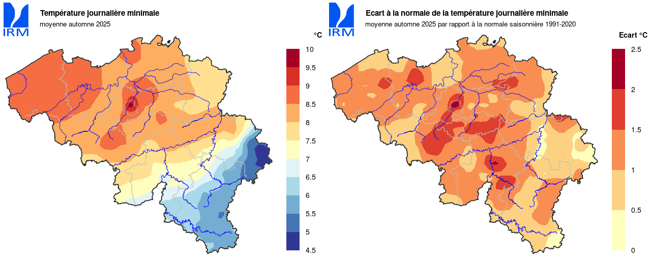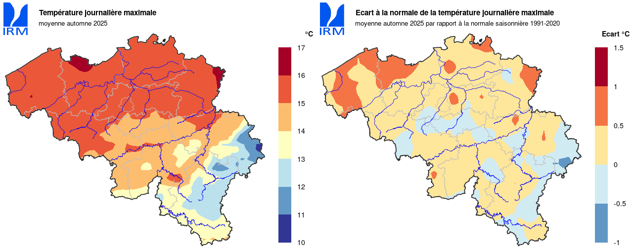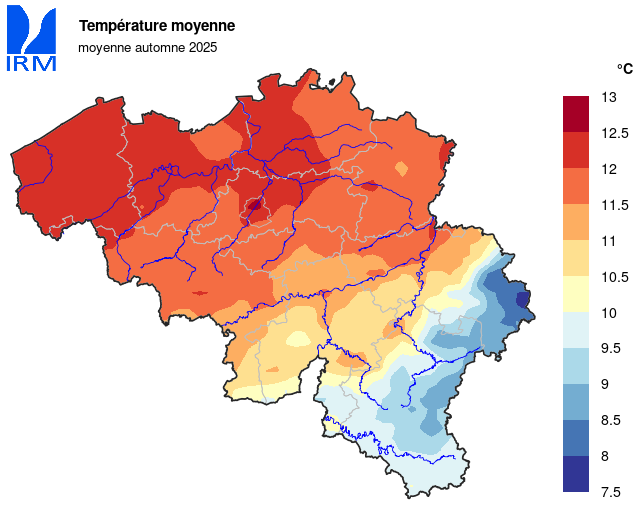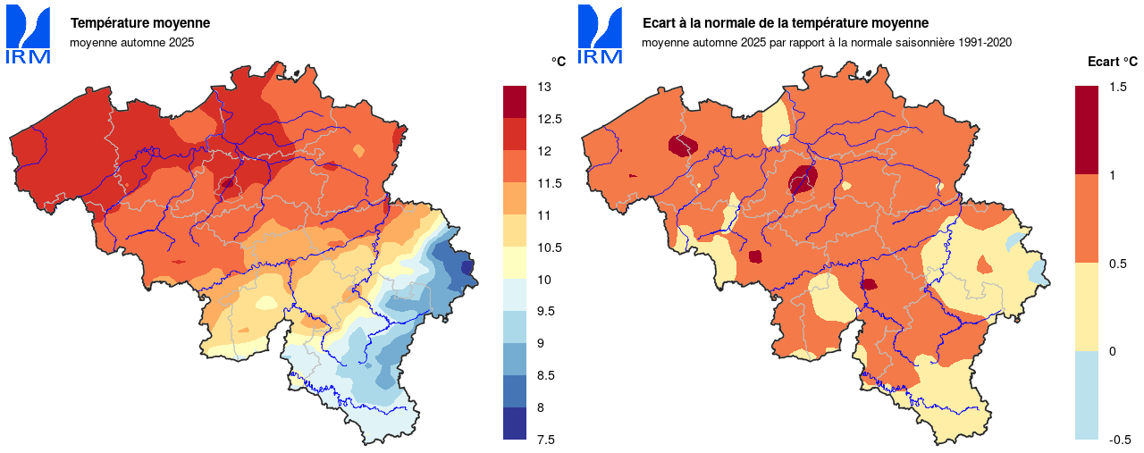 L'automne 2025 a été plus chaud que la normale, avec une température moyenne de 12,0 °C (normale : 11,2 °C).
