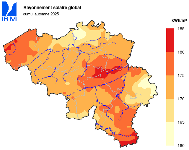 Au total, les précipitations enregistrées, à Uccle l'automne dernier, ont été légèrement inférieures à la moyenne : 201,9 mm (normale : 209,3 mm) sur 51 jours (normale : 48,5 jours).