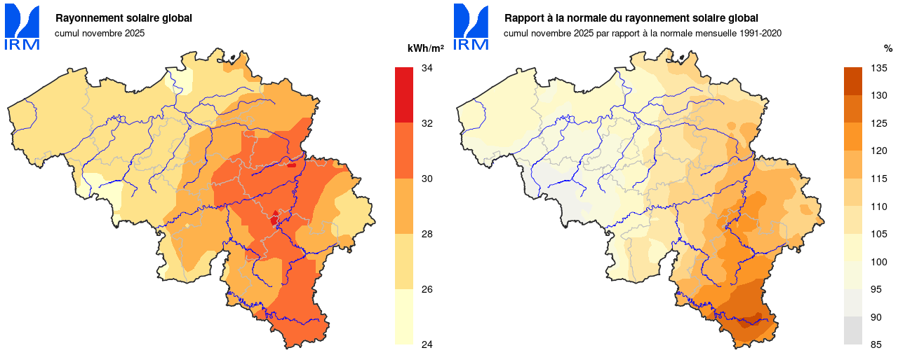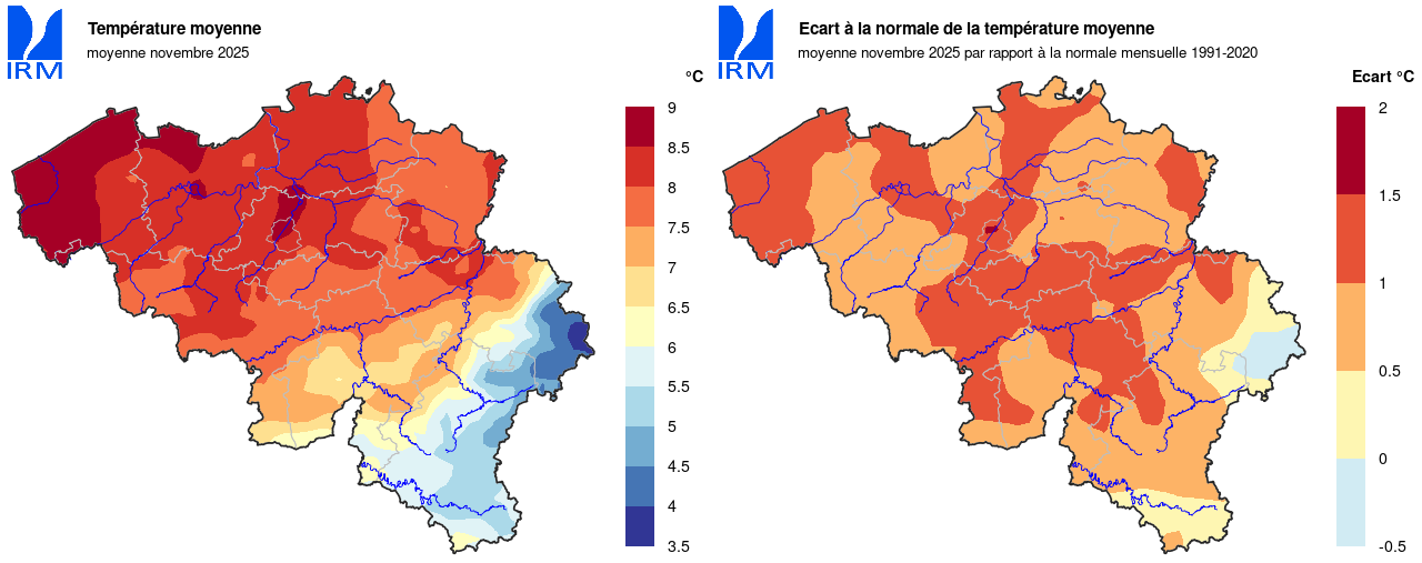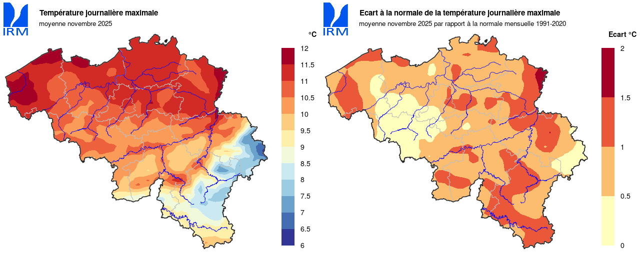 Novembre 2025 : Un début de mois chaud, suivi d'une fin plus froide. Des contrastes importants au niveau des précipitations