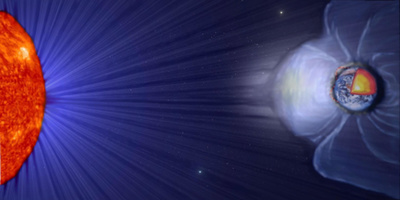Waarom zijn wij eigenlijk geïnteresseerd in het ruimteweer? Zowel de atmosfeer als het magnetisch veld van onze planeet beschermen ons tegen ultraviolette straling en stromen van zeer energetische deeltjes die in de ruimte circuleren.