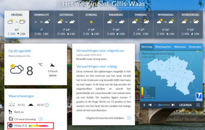 Wanneer jullie op de homepage het weerbericht lokaal voor jullie gemeente hebben ingesteld, zullen jullie daar nu ook de voorspelde uv-index (voor onbewolkte hemel) voor vandaag voor jullie gemeente terugvinden.