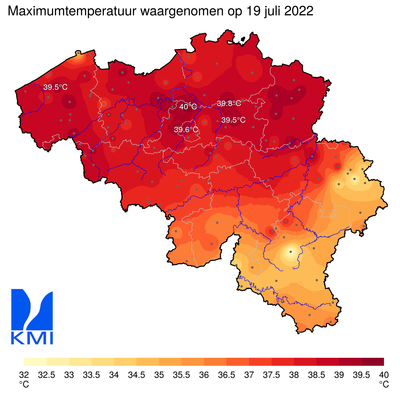 Wevelgem: 36.2°CSint-Jans-Molenbeek: 39,6°C