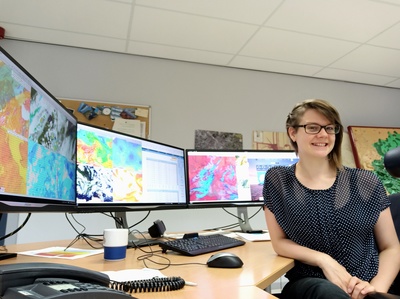 “Ik heb de kennis voor deze job niet tijdens mijn studies geleerd, maar wel van mijn collega's in het weerbureau.” (Sarah)