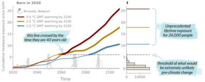 Hoe jonger iemand is, hoe groter de kans op ongeëvenaarde blootstelling aan klimaatextremen. Zelfs als we erin slagen de opwarming van de aarde te beperken tot 1,5°C, zal 52% van de kinderen die in 2020 geboren worden, te maken krijgen met een ongekende blootstelling aan hittegolven, vergeleken met slechts 16% van de kinderen die in 1960 geboren zijn. Voor hittegolven is het effect vooral uitgesproken voor kinderen die geboren zijn na 1980, wanneer klimaatveranderingsscenario's in toenemende mate de blootstellingsniveaus dicteren.