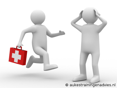 - Begin reanimatie indien het slachtoffer niet meer ademt of...