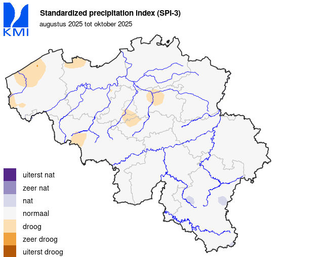 In ons land lagen de maandelijkse neerslagtotalen rond of boven de normale waarde. De minste neerslag viel in Belgisch Lotharingen en de Condroz (ongeveer 98% van de normale hoeveelheid) en de meeste neerslag viel in de regio Gileppe en Warche (ongeveer 136% van de normale hoeveelheid).