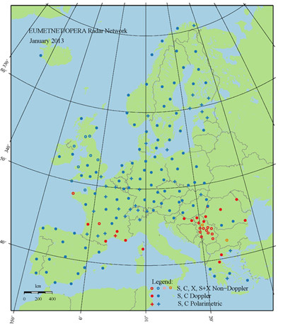 De radars van het KMI en de VMM zijn opgenomen in het Europese radarnetwerk dat momenteel meer dan 200 radars omvat. De gegevens van deze radars worden in realtime verzameld om elke 15 minuten een samengesteld radarbeeld te vormen dat heel Europa bestrijkt. Dit beeld maakt het mogelijk om de evolutie van neerslag op een continentale schaal te volgen.