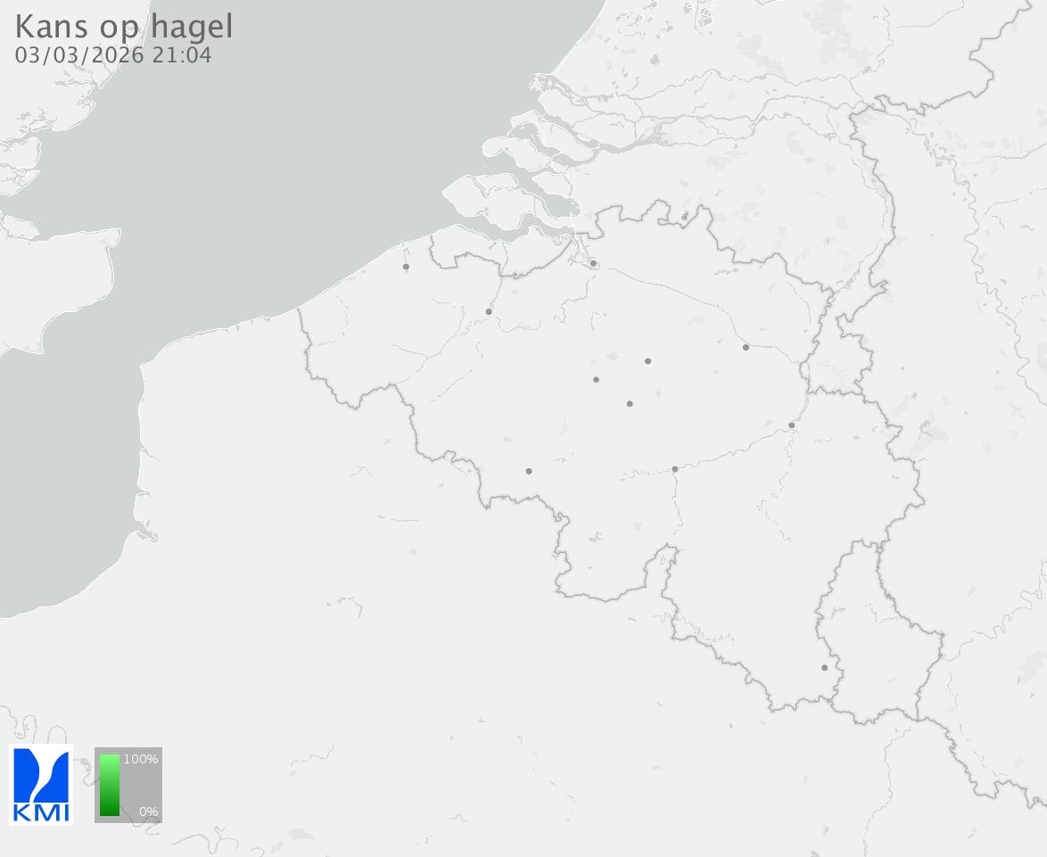 Deze animatie toont de kans op hagelval ingeschat door de radars.