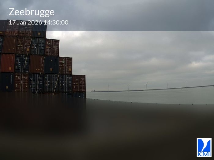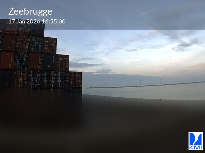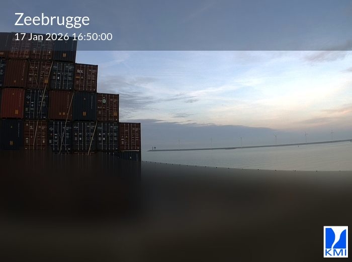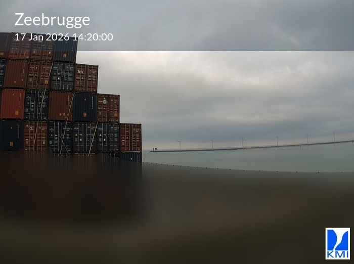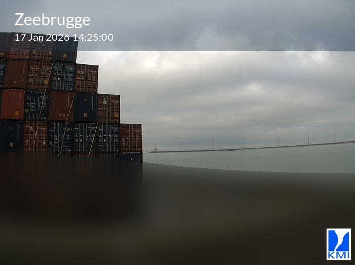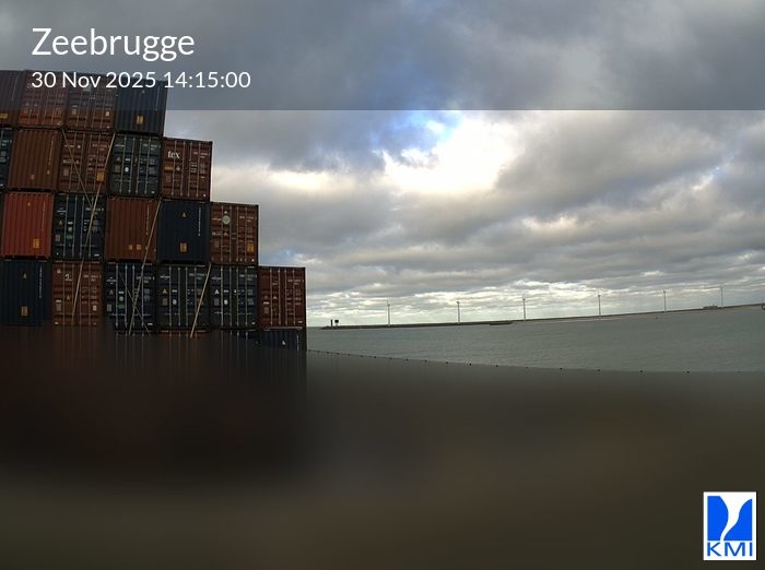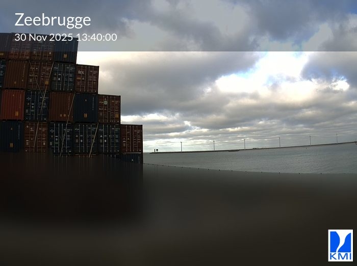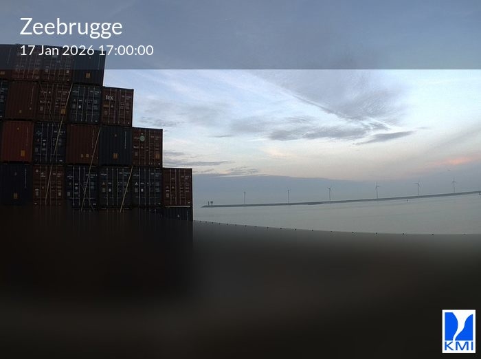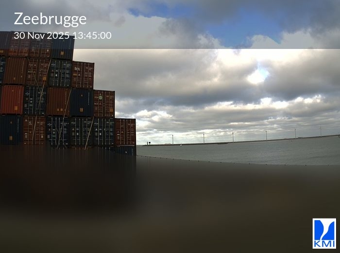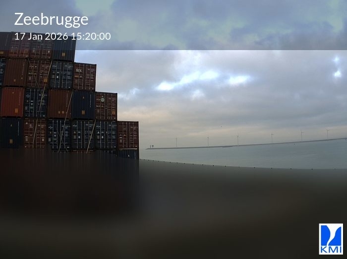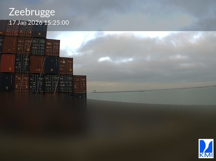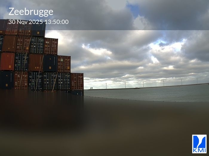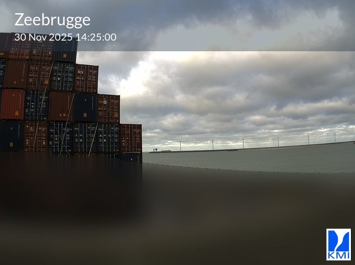 De webcam bevindt zich op de Leopold II-Dam in de haven van Zeebrugge aan de Belgische Kust en is naar het noorden gericht om het rechtstreekse zonlicht tijdens het middaguur te vermijden.