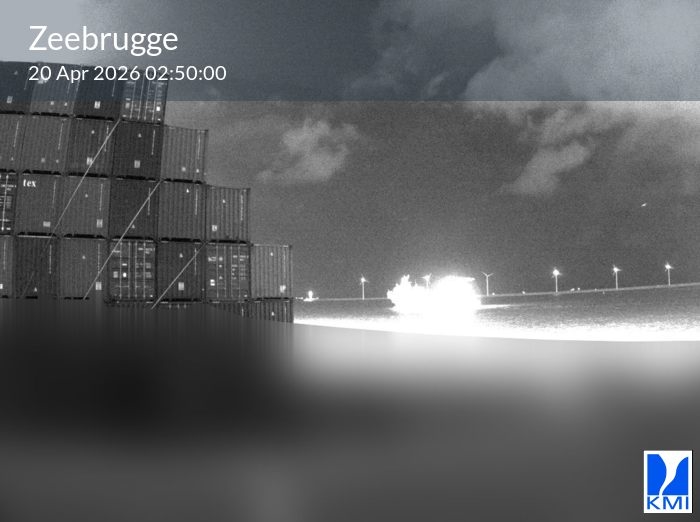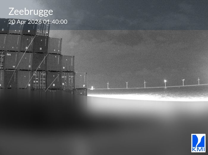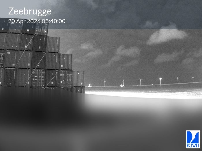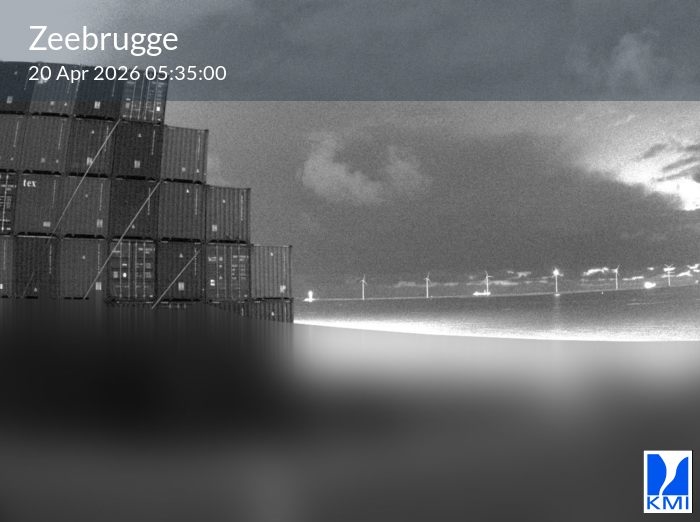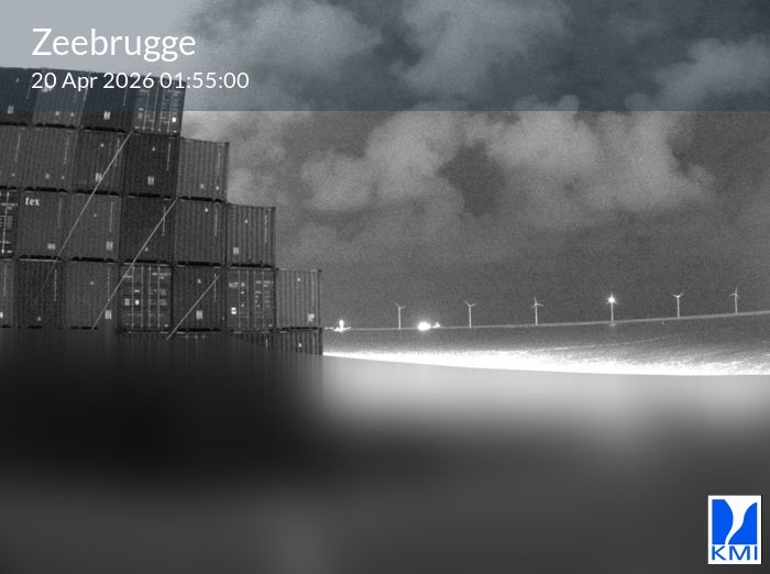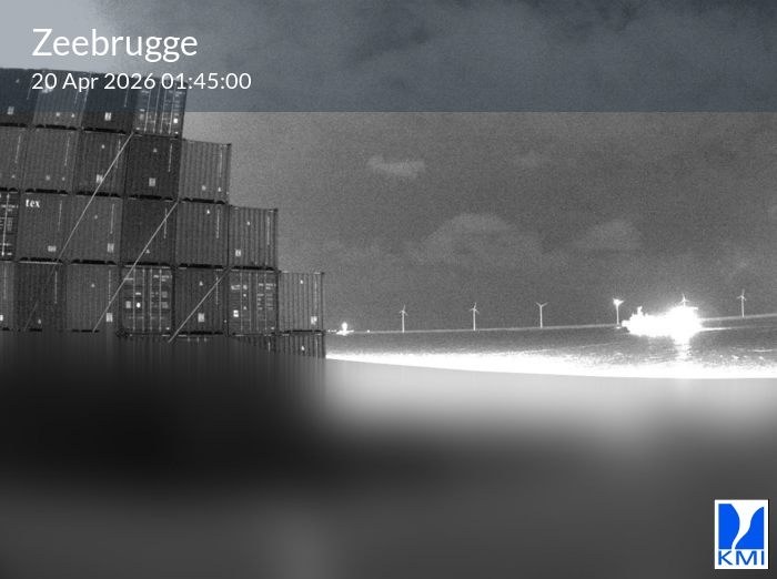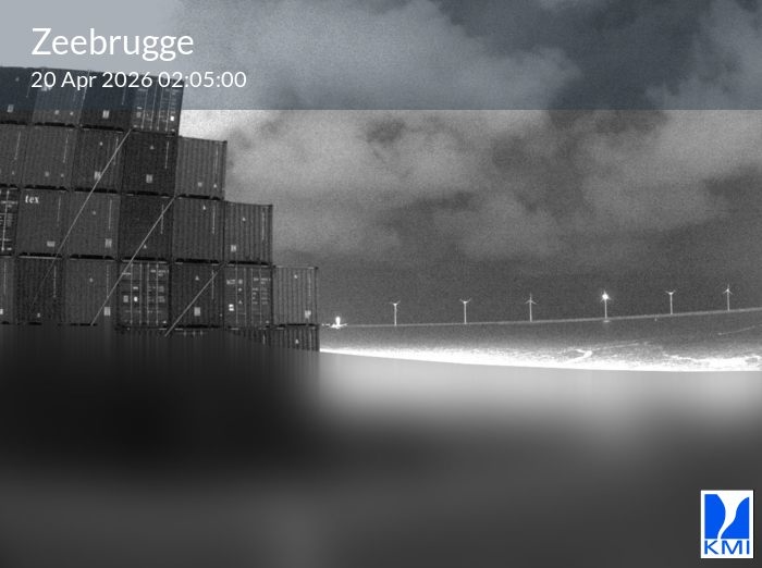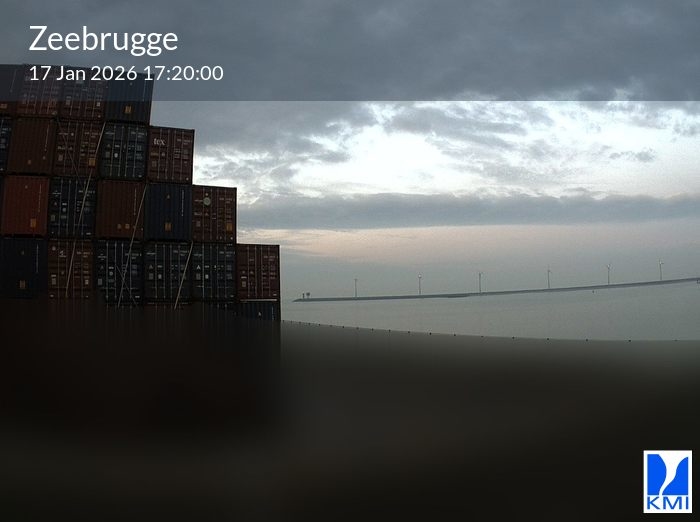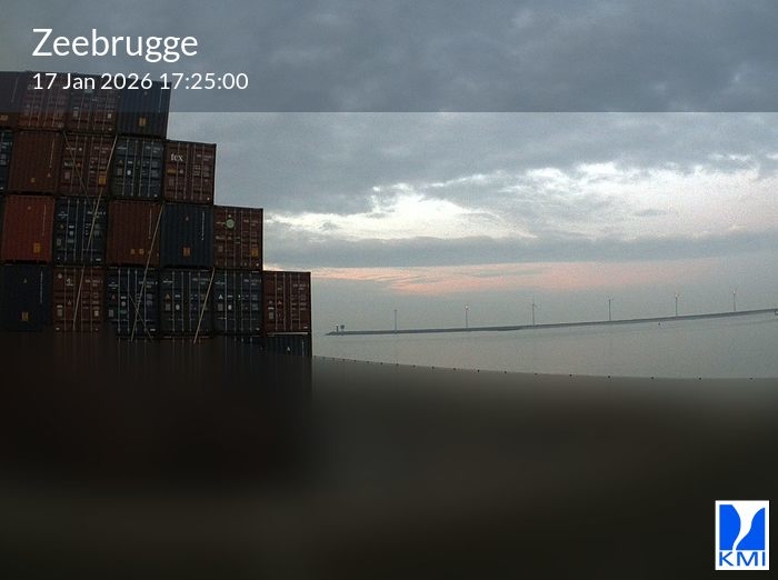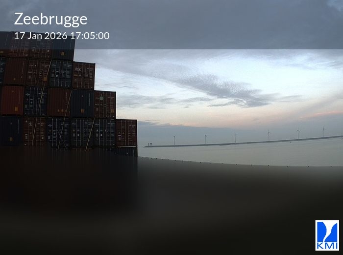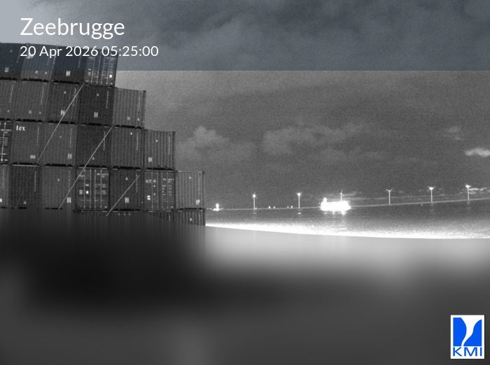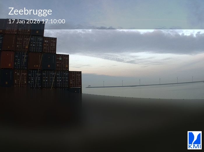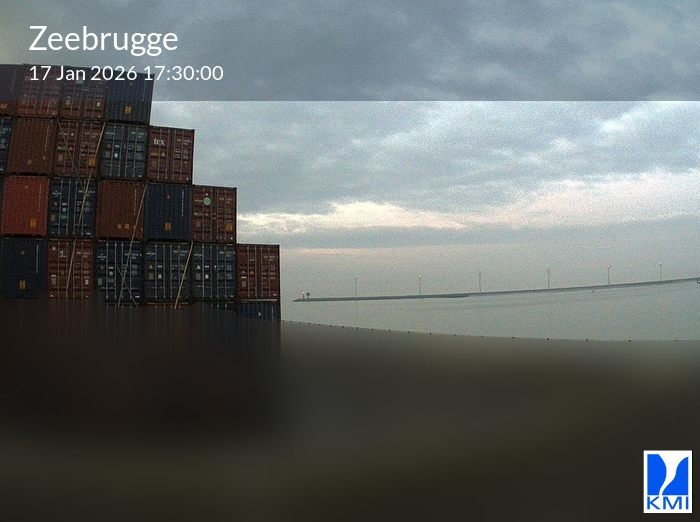 De webcam bevindt zich op de Leopold II-Dam in de haven van Zeebrugge aan de Belgische Kust en is naar het noorden gericht om het rechtstreekse zonlicht tijdens het middaguur te vermijden.