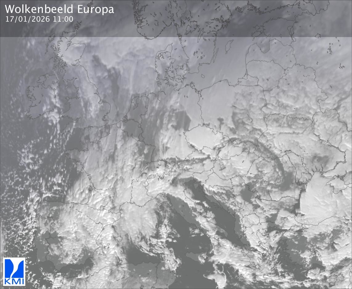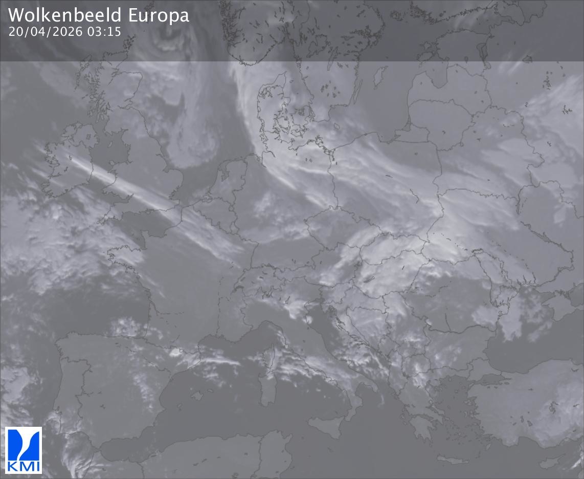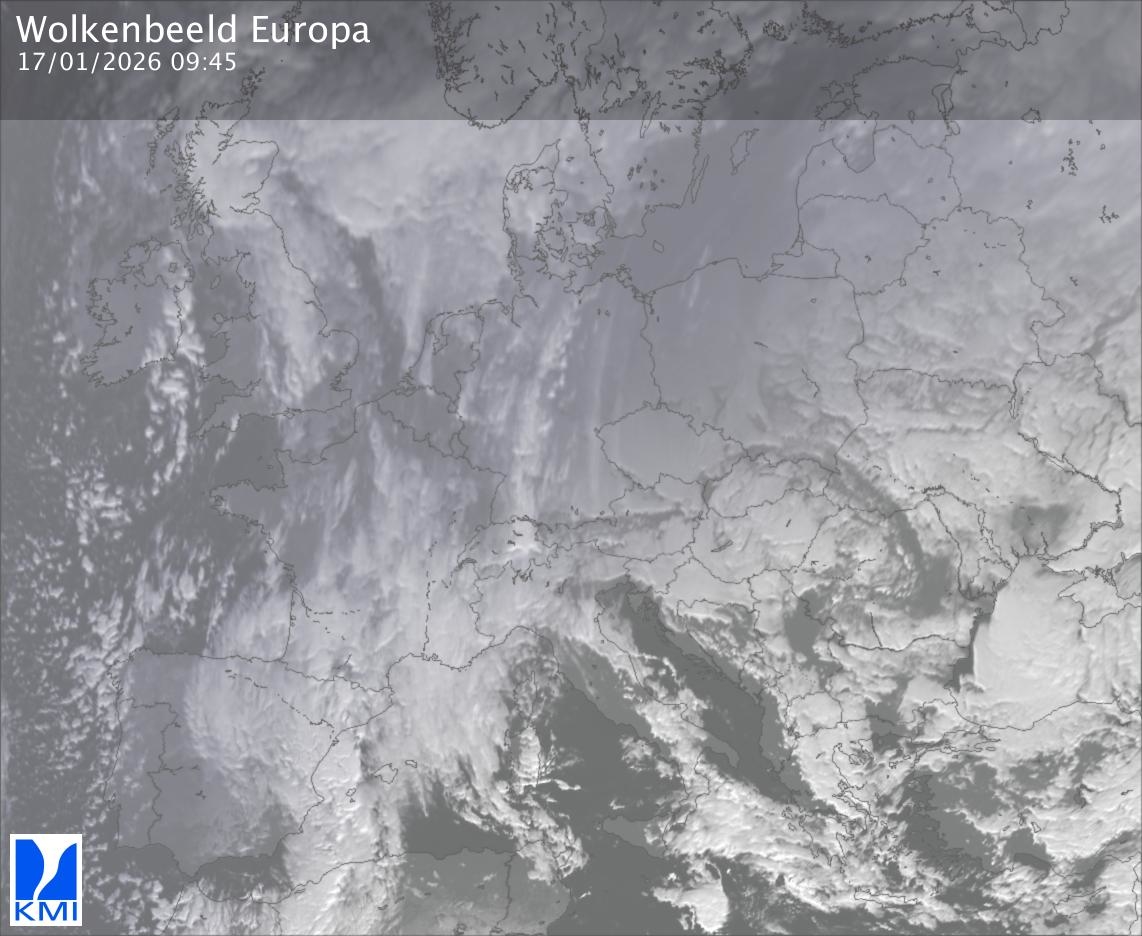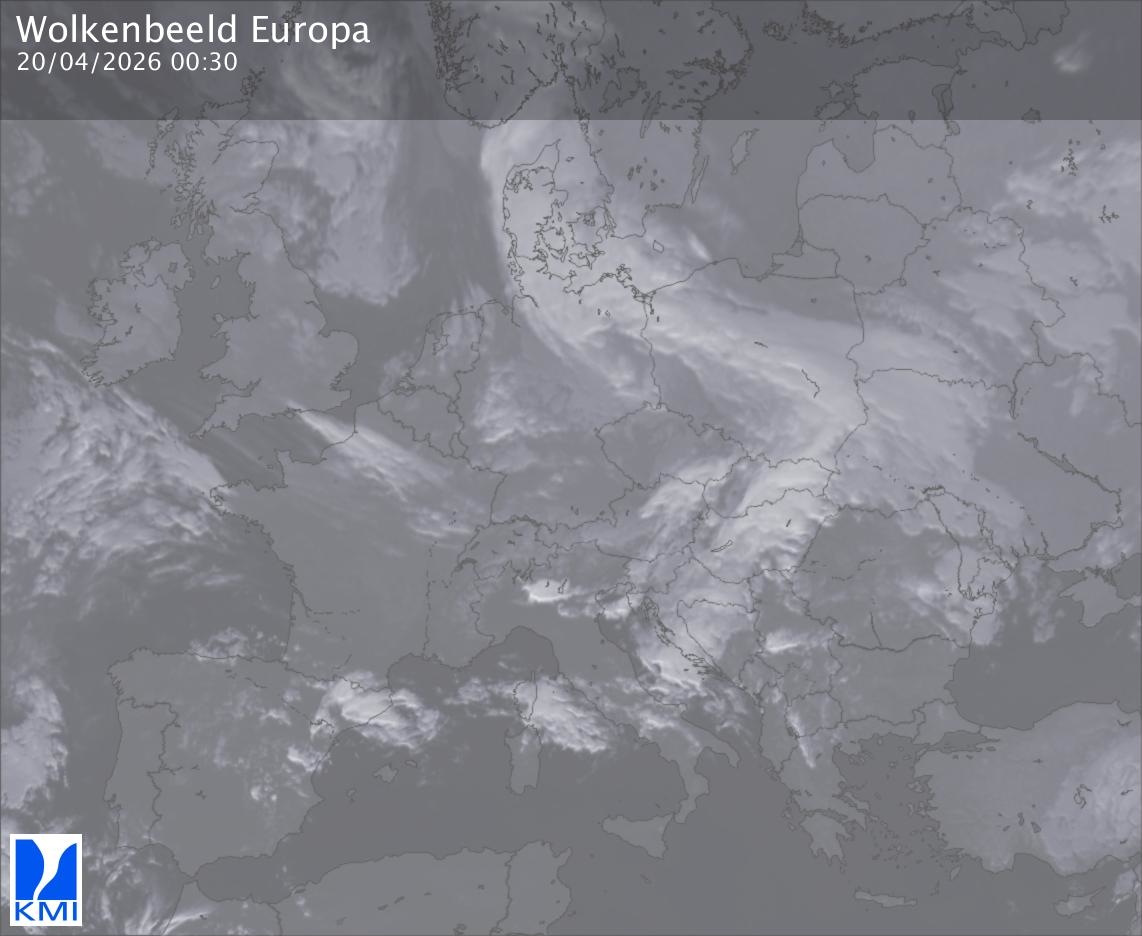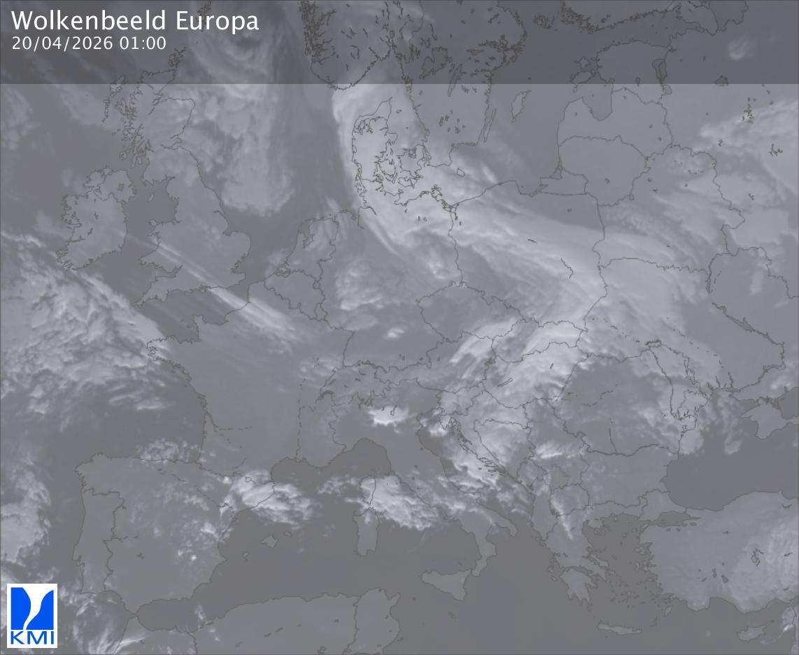 Wolkenbeelden van Europa: een combinatie uit het zichtbare (dag) en infrarode (nacht) spectrum.
