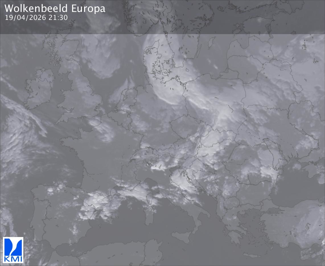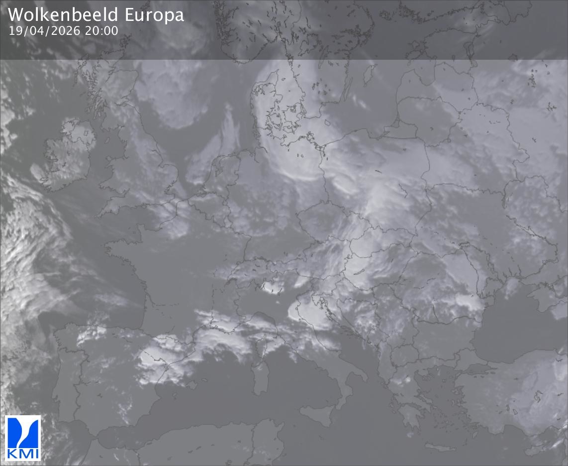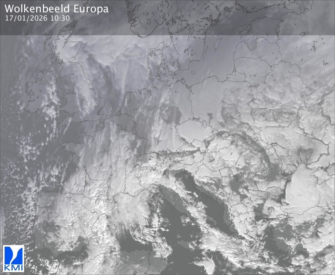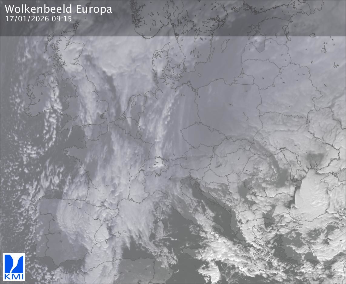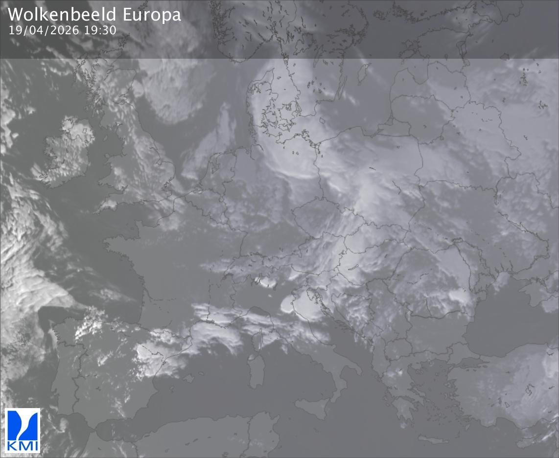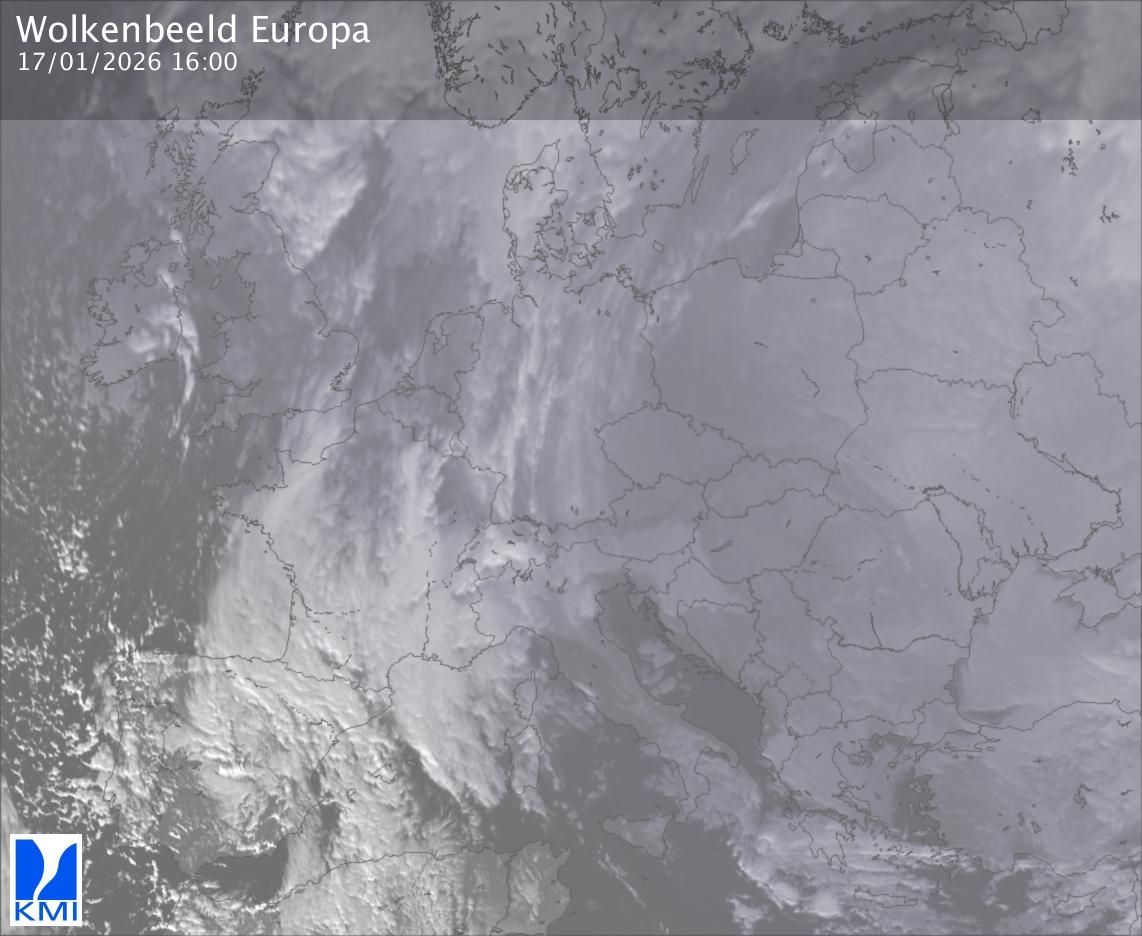 Wolkenbeelden van Europa: een combinatie uit het zichtbare (dag) en infrarode (nacht) spectrum.