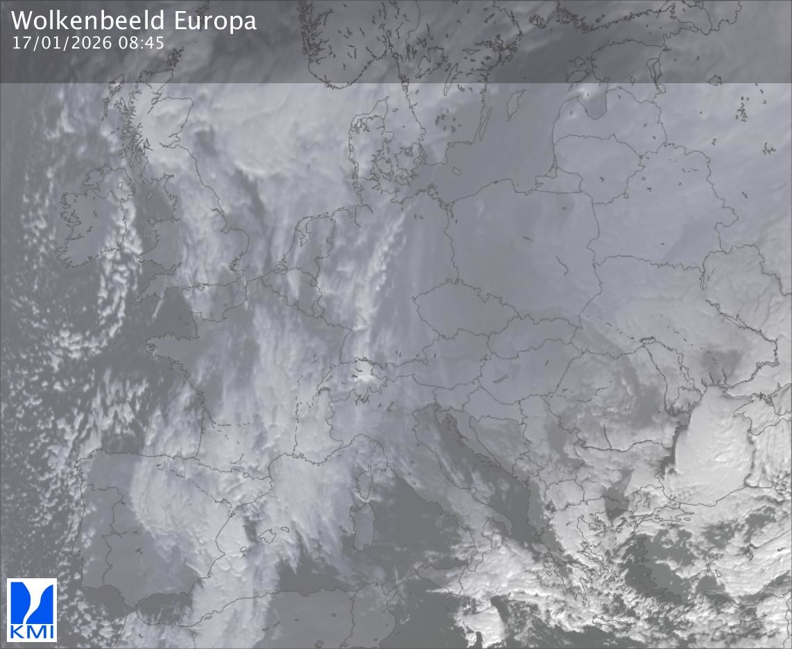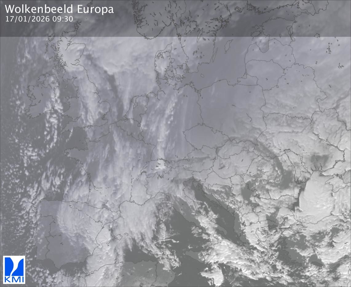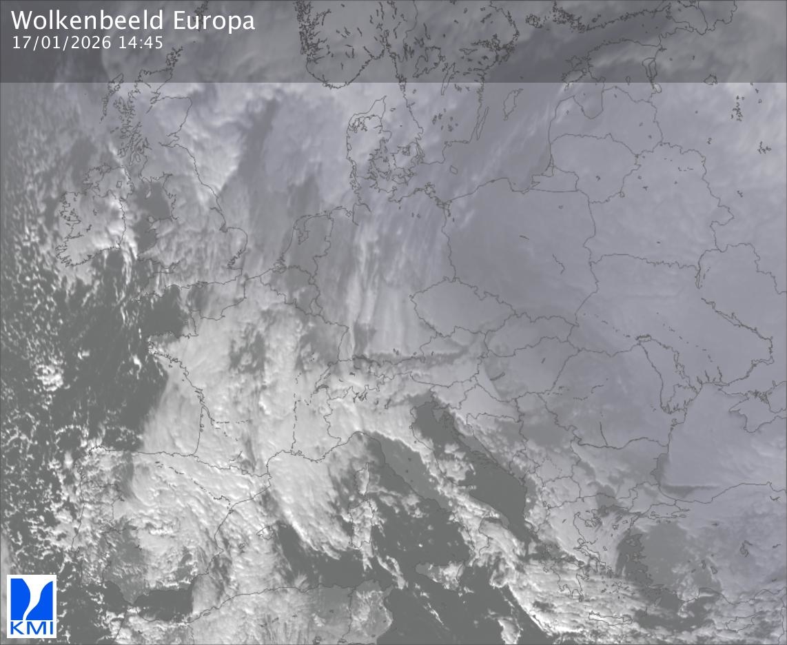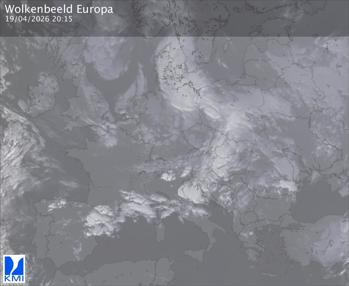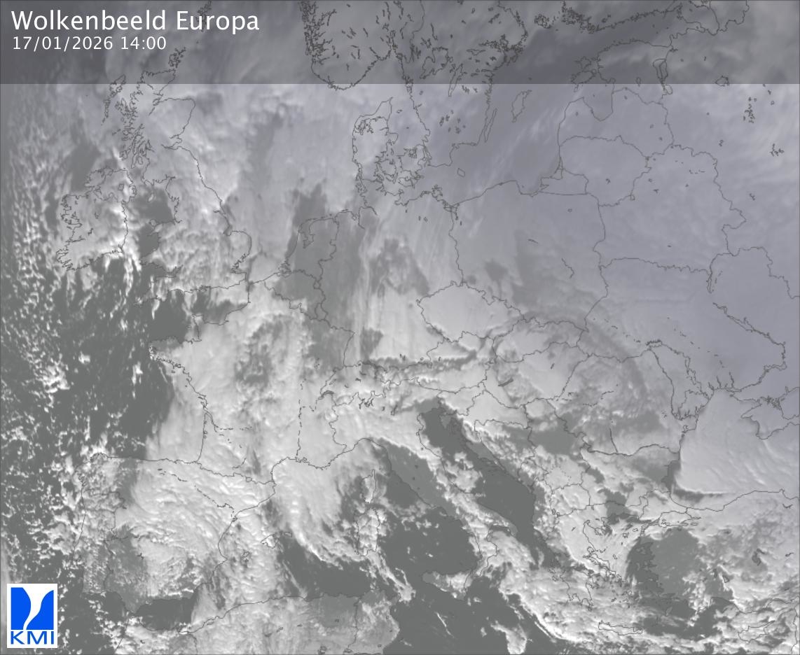Wolkenbeelden van Europa: een combinatie uit het zichtbare (dag) en infrarode (nacht) spectrum.