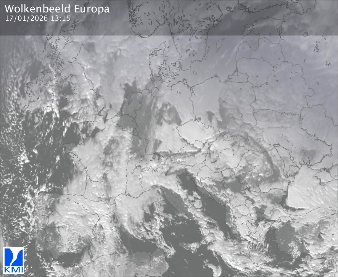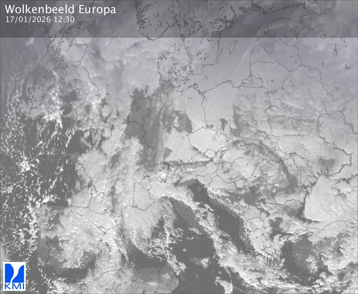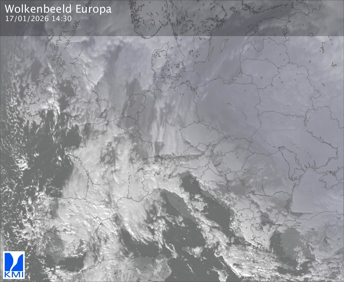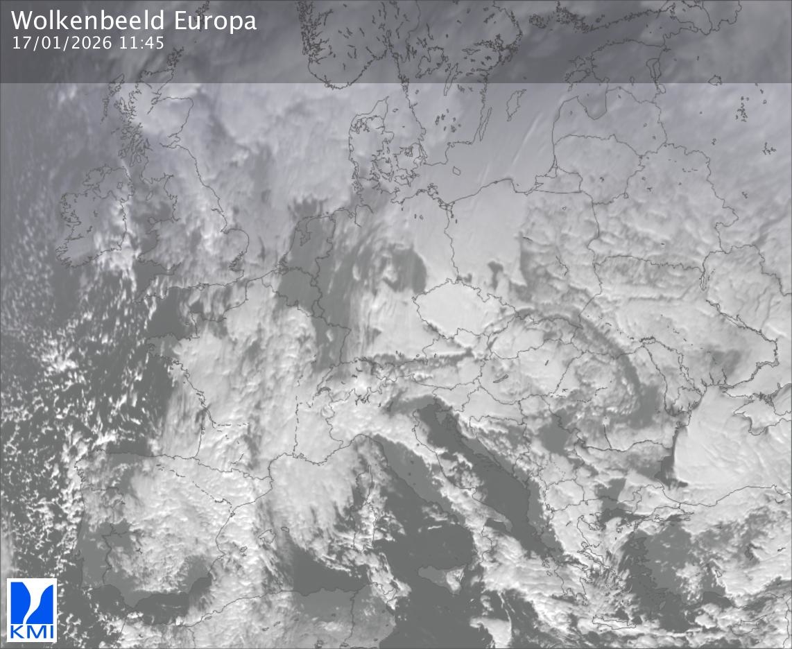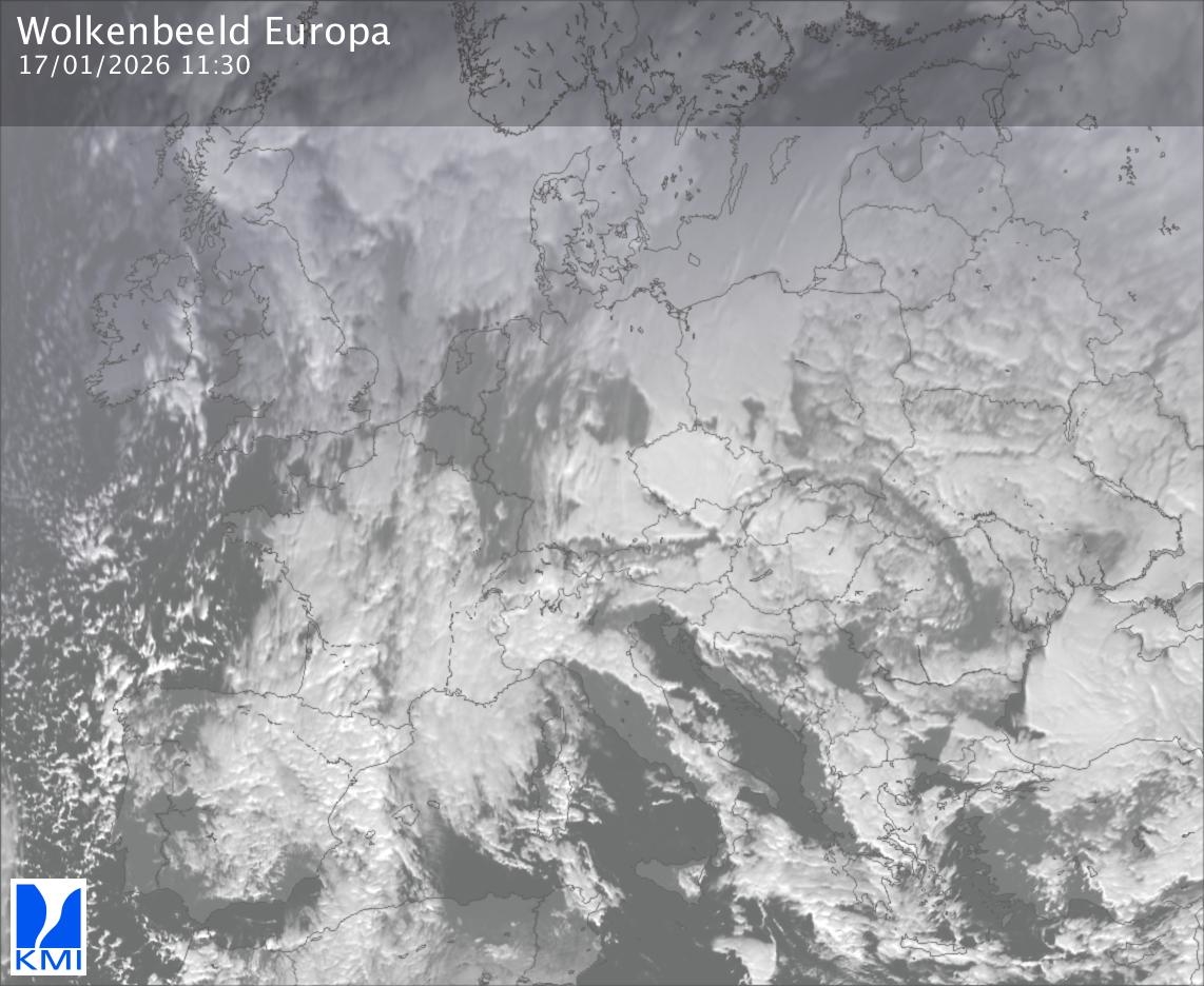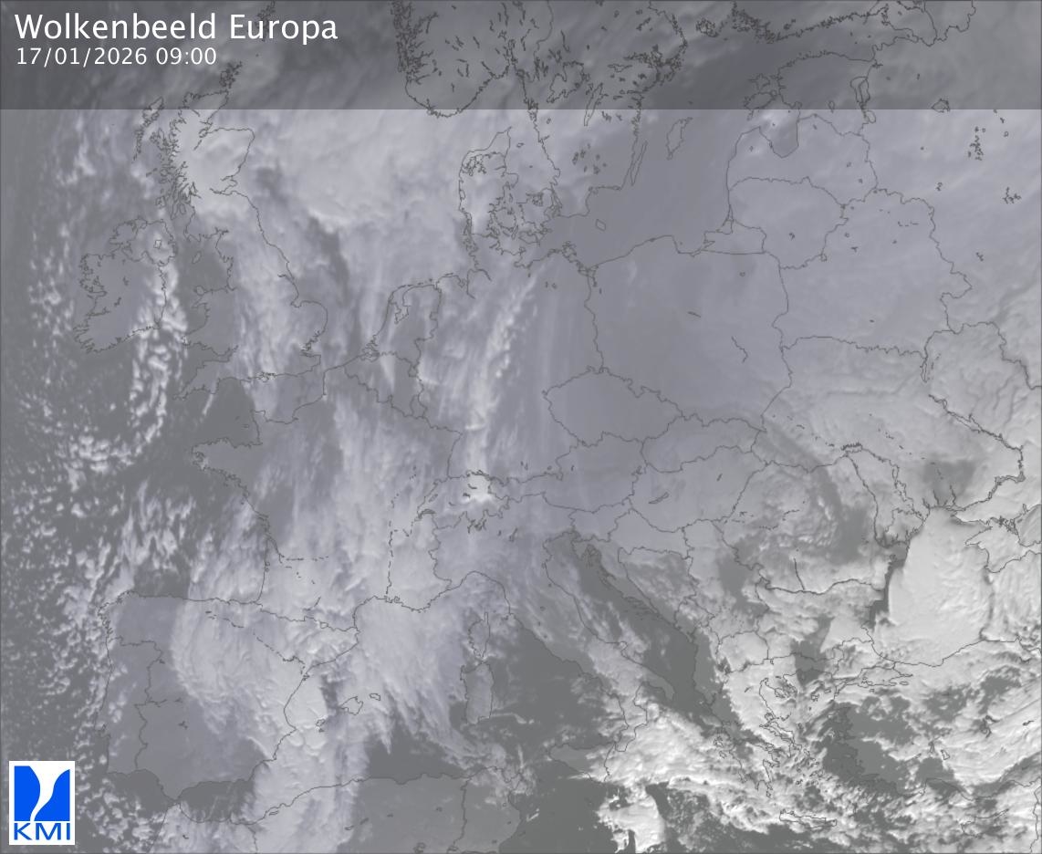 Wolkenbeelden van Europa: een combinatie uit het zichtbare (dag) en infrarode (nacht) spectrum.